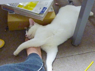 「何してるにゃー。遊ぶにゃー!」と起こしに行きます。