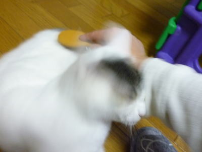 我が家の少年猫キラ(ごまと同じ11ヶ月くらい)を相手に毎