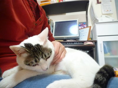 甘えん坊のごまだれ君、でも自分からは膝に乗ってきません。