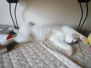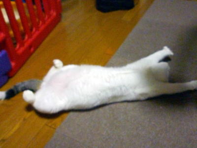 最近ではこの状態で触っても、驚いて飛び起きることはなくなりました。