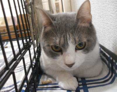 キャットケアハウスに着いたばかりの画像。固まってます・・・。