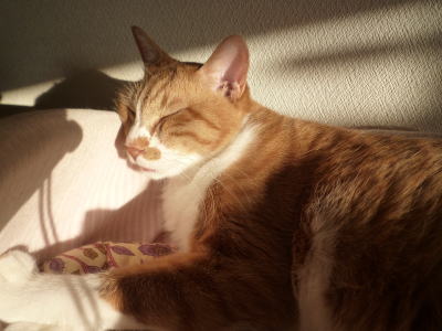 少し臆病ですが、撫でると喉をゴロゴロ鳴らして甘えます。