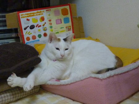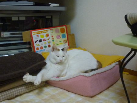 お気に入りの場所で寛いでいるすあまさん。